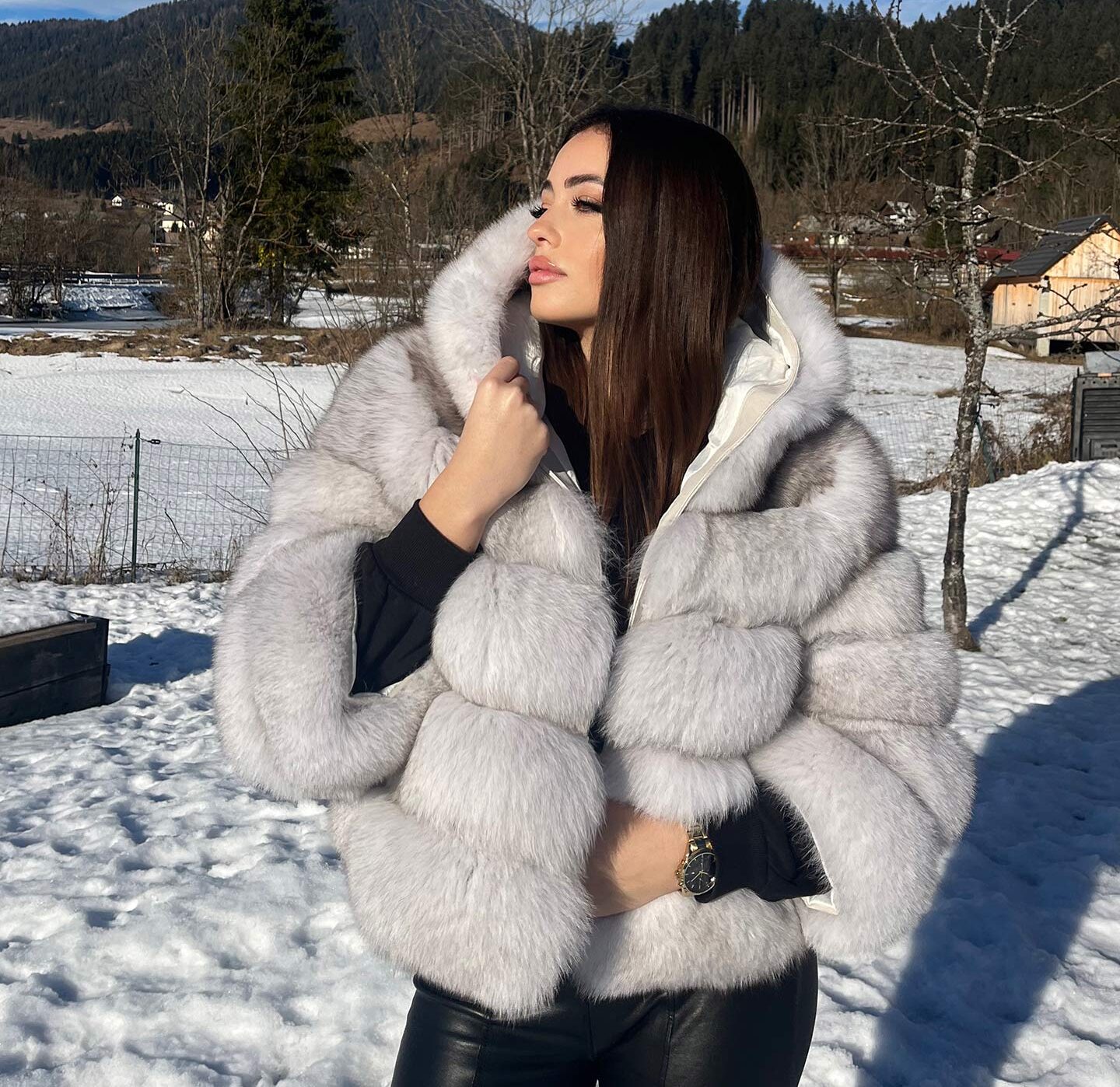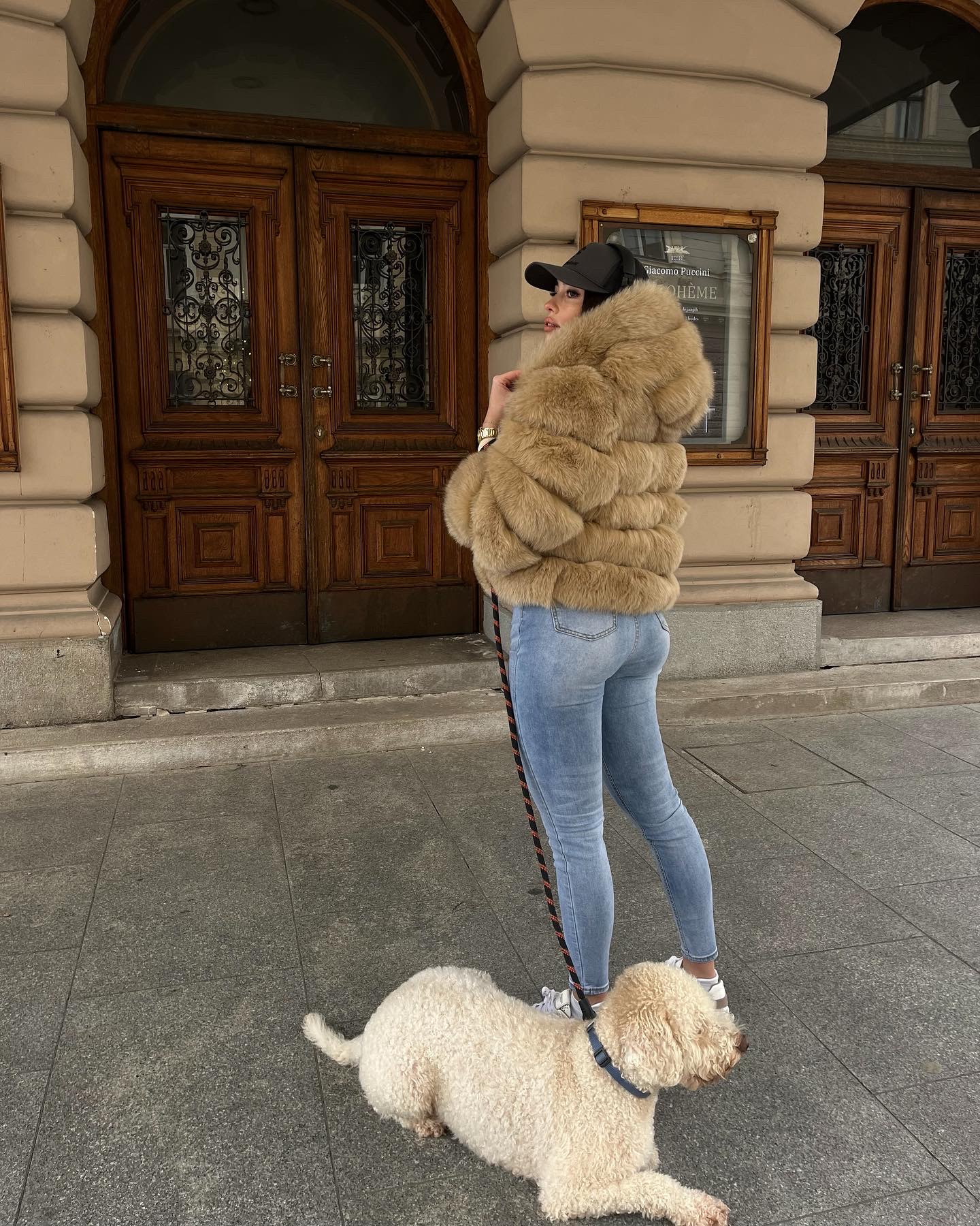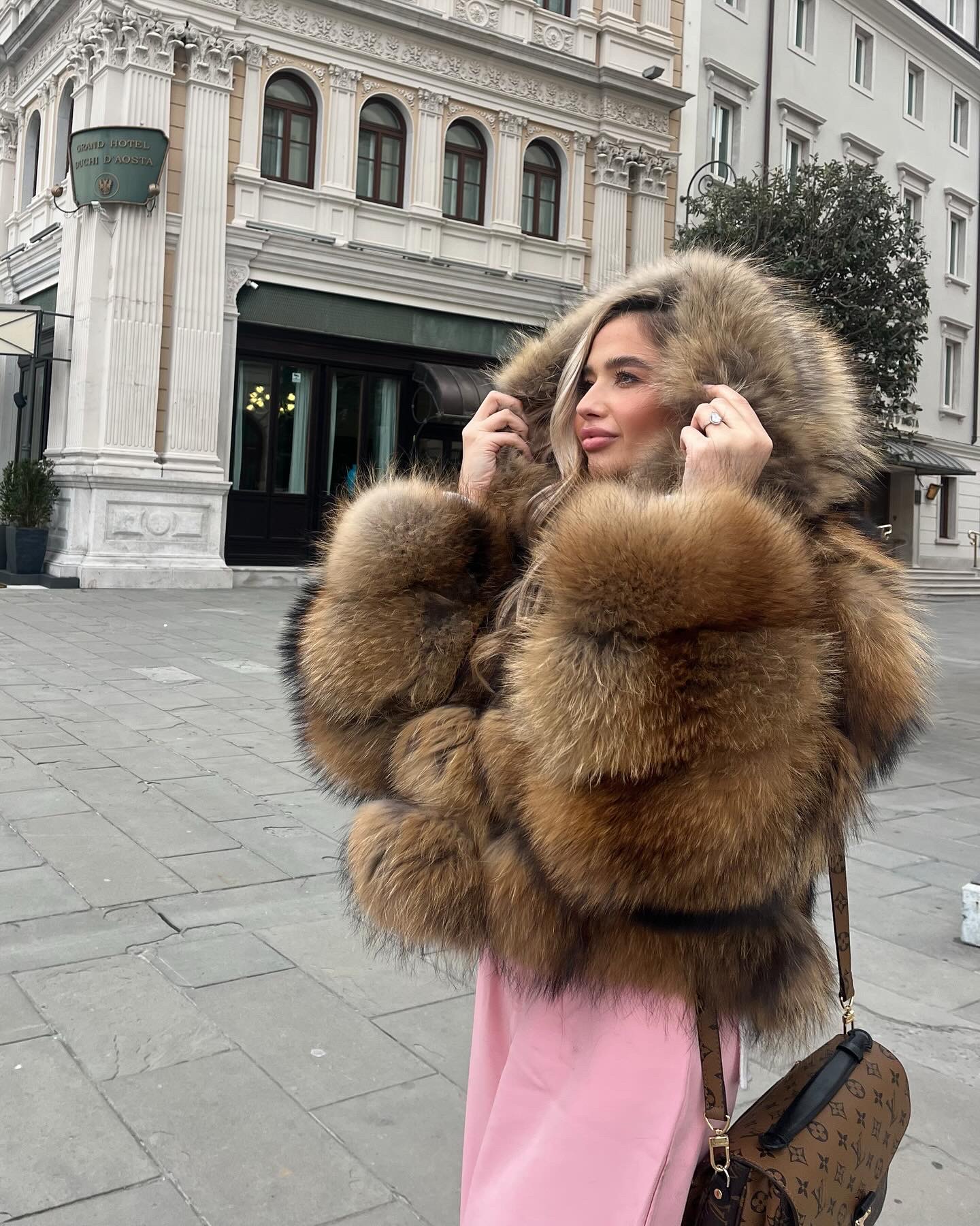La pelliccia con cappuccio unisce eleganza e un tocco sportivo, creando un look straordinario per ogni occasione.